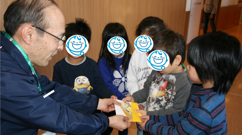 2016年1月 鬼怒川決壊で被災したこども達に遊具と交換できる商品券を贈りました。